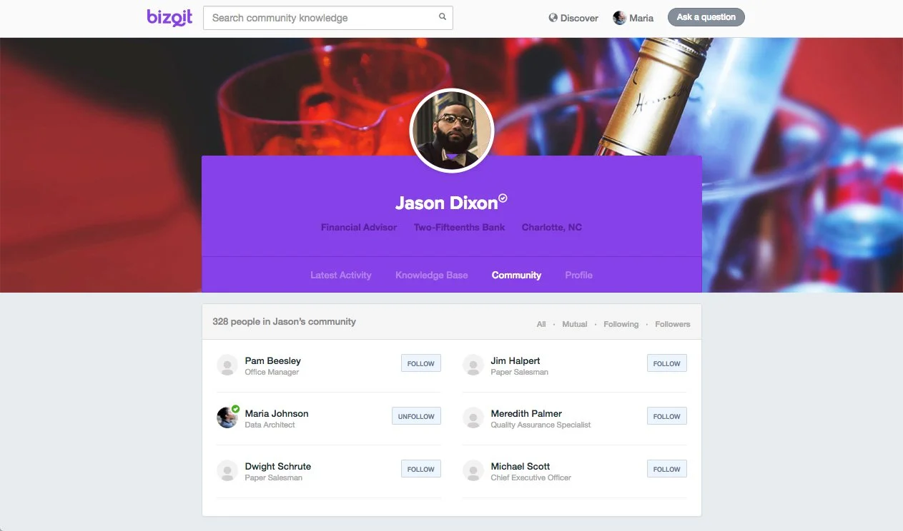 After two startup pivots, bizqit Co. emerged from a deeper discovery of an opportunity in the growing knowledge management market: there is a wealth of untapped, unorganized knowledge in communities that is not adequately flowing from one person to the next, thus making it more difficult for people to navigate their lives. How might we leverage the untapped knowledge within our communities to alleviate this problem?