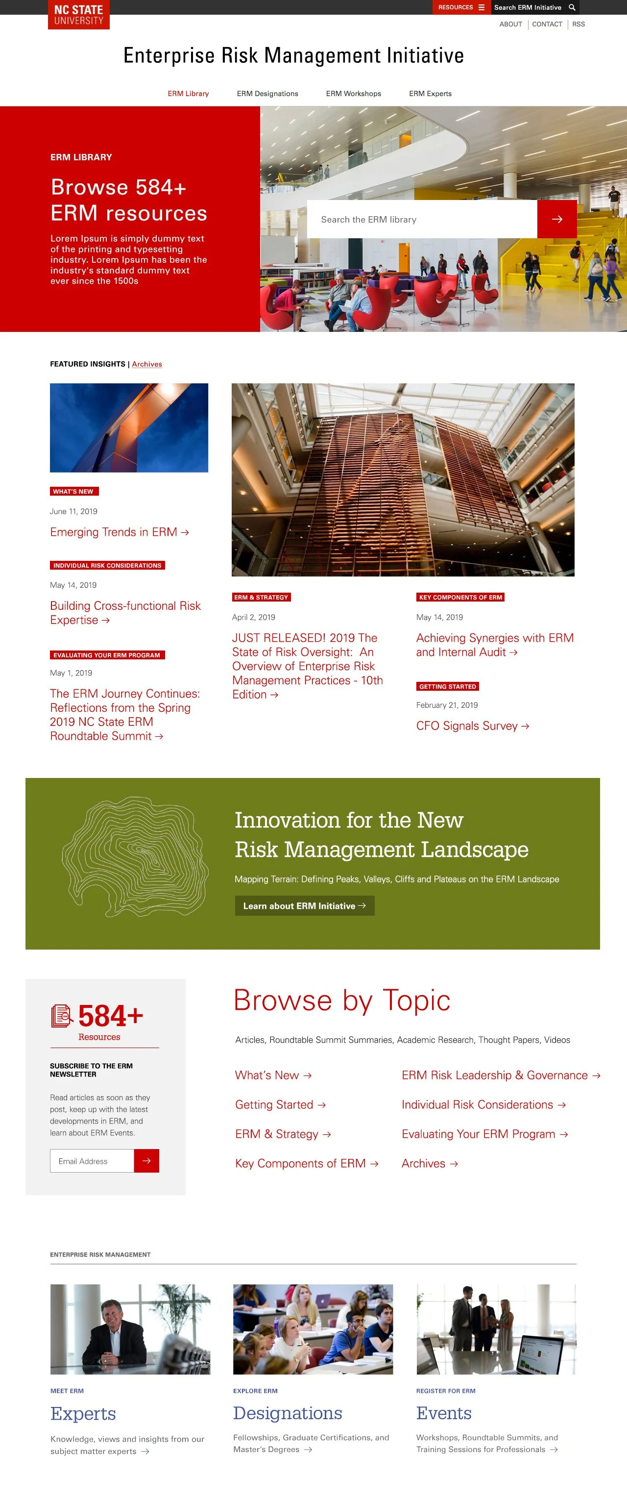 A website redesign aimed to raise the digital profile of North Carolina State University’s Enterprise Risk Management Initiative as a knowledge leader in a budding industry.